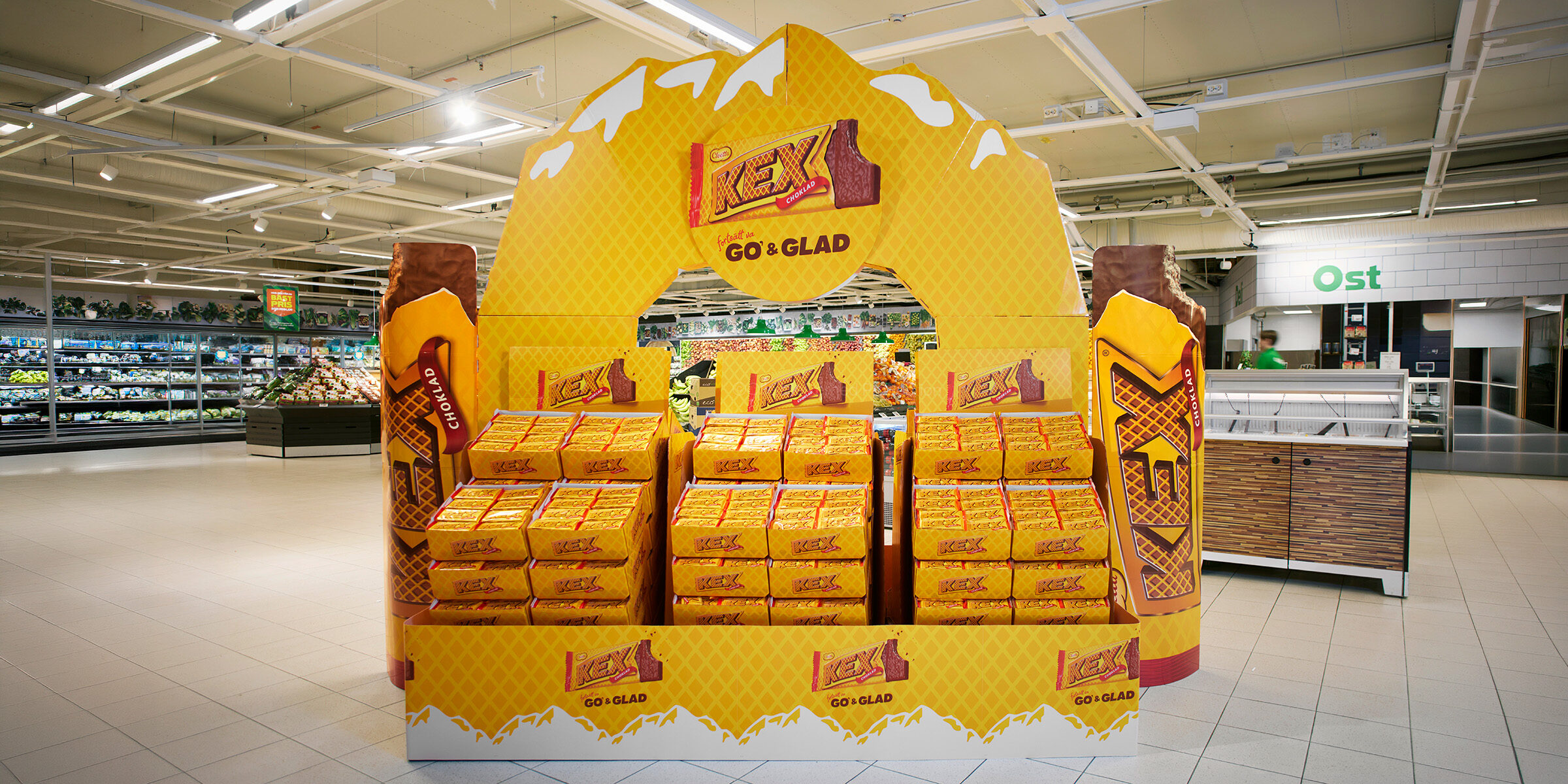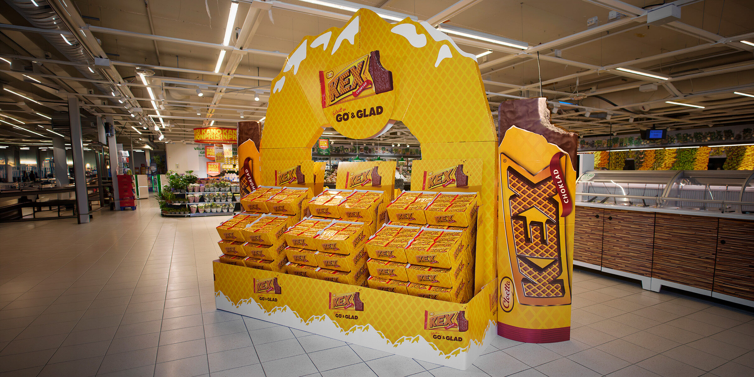 Tillsammans med Cloetta har vi utvecklat Kexjakten – en butikskampanj för Kexchoklad med imponerande Kexchoklad exponeringar i butik. SRC fick äran att utveckla butikskampanjen – Kexjakten i samarbete med Cloetta. Idén blev att på vintertemat bygga ”berg” i butik.